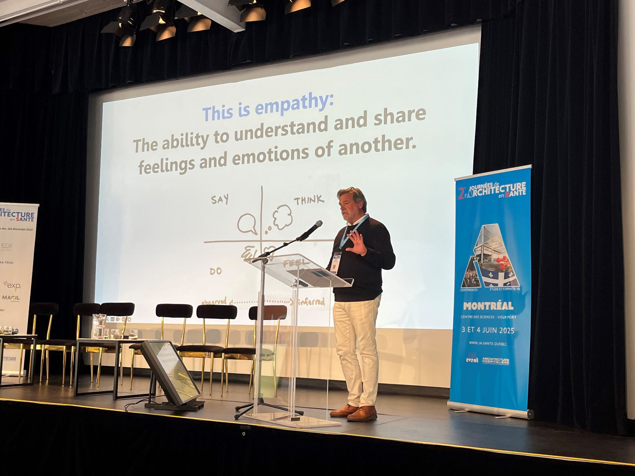 Ian Sinclair, MHA, CHE, presented at JAS Quebec, where he presented his insights from his paper, The Case For Empathy-Based Design. Ian’s presentation illustrated how embracing empathy as a design driver and “putting ourselves in the shoes of patients” can reveal never-before considered human touch points that can lead to breakthrough design possibilities for healthcare facilities. Thank you to JAS Journées de l’Architecture en Santé – Québec for the opportunity to share and connect.