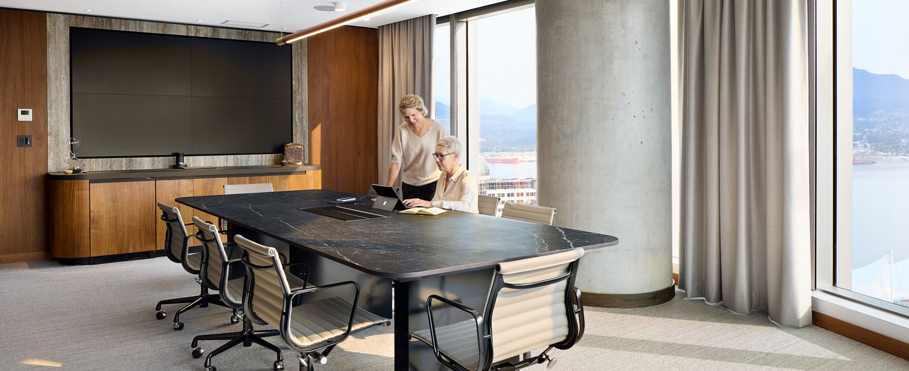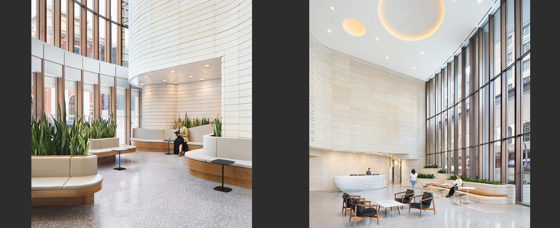 320 Granville is downtown Vancouver’s latest AAA office tower by Bosa Developments and offers a unique workplace experience, combining stunning views, flexible spaces and next-level lifestyle amenities in an iconic, vertical form. From the expansive triple-height lobby to the amenity spaces, this sculptural glass tower will become an icon on the Vancouver skyline. The unparalleled arrival experience is enhanced with a selection of tailored furniture settings, and finish selections to seamlessly elevate the classic architecture of the building.