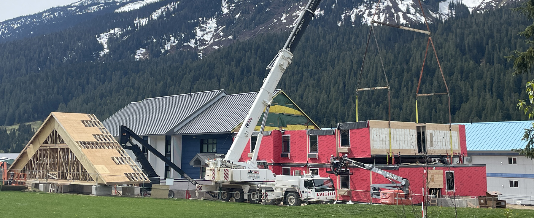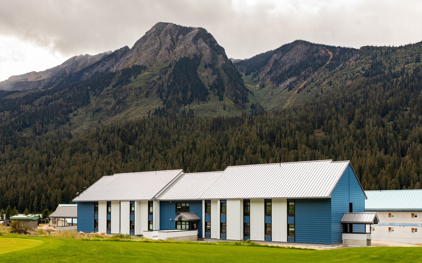 To replace the aging facilities from the 1960s, we designed a modern, two-story prefabricated building featuring 40 modular studio dorm units, along with laundry facilities, storage areas, and shared amenity spaces. Modular construction played a pivotal role in the project’s success, enabling an accelerated construction timeline, enhanced quality through off-site fabrication, and efficient delivery to the remote site. This thoughtful design ensures the workforce is provided with comfortable, functional, and contemporary accommodations.