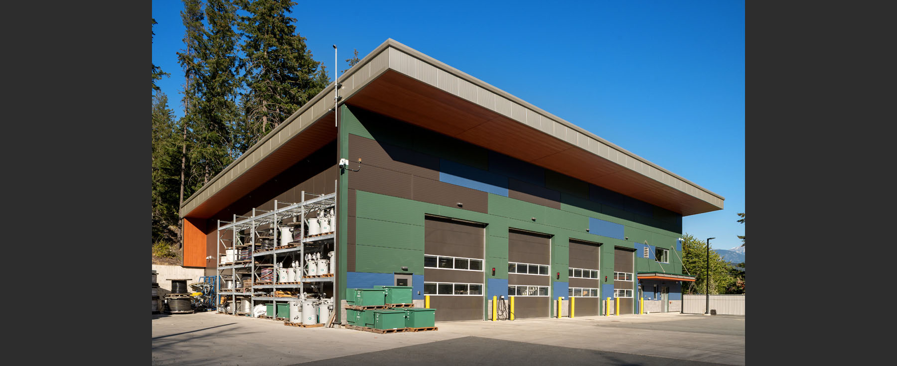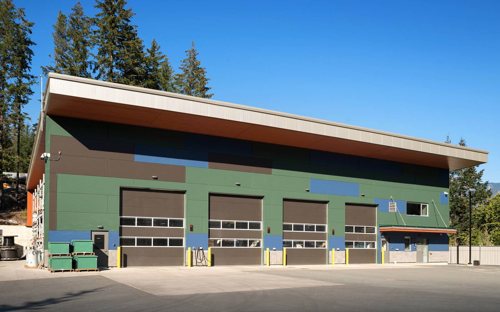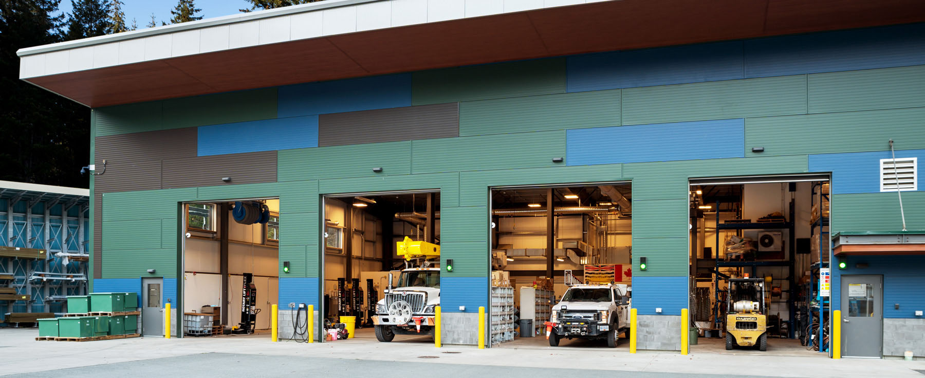 BC Hydro’s Pemberton Regional Office works in tandem with BC Hydro’s Whistler and Squamish facilities within the Sea-to-Sky corridor. We designed a new two-storey post-disaster administration building with office areas, employee amenities, a warehouse and three tucks bays, in addition to supporting ancillary storage buildings on site. To manage costs, we worked directly with a pre-engineered building supplier to create a solution that would meet BC Hydro’s functional needs and budget as well as a City Council mandate that the building appear as non-industrial as possible. We developed a cost-effective cladding system, which incorporated deep multi-coloured horizontal panels with wood soffit highlights to create a strong street presence. The result was a unique solution with a significant reduction in construction costs and which was regarded positively by both City Council and neighbours.