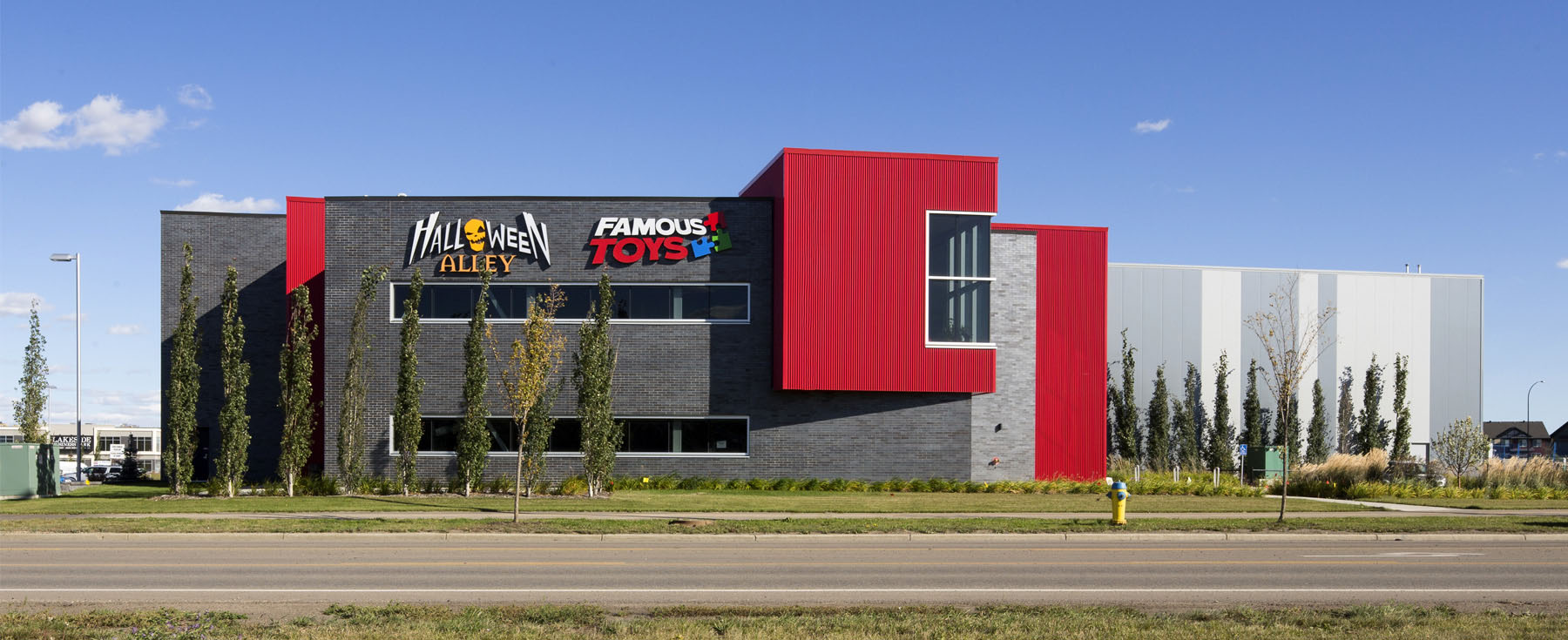 The majority of the building is an efficient, economical warehouse space that is the company’s backbone. It was carefully designed to ensure a streamlined work flow and a quality work environment. The remaining portion provides office space, presentation space, and a reconfigurable lounge area that can be used as work space, lunch room, meeting space, or entertainment venue. This flexible space also includes areas for yoga and fitness sessions, emergency childcare and office events. Finally, a toy store is incorporated into the design in a way that allows it to serve a different clientele and operate during separate hours.