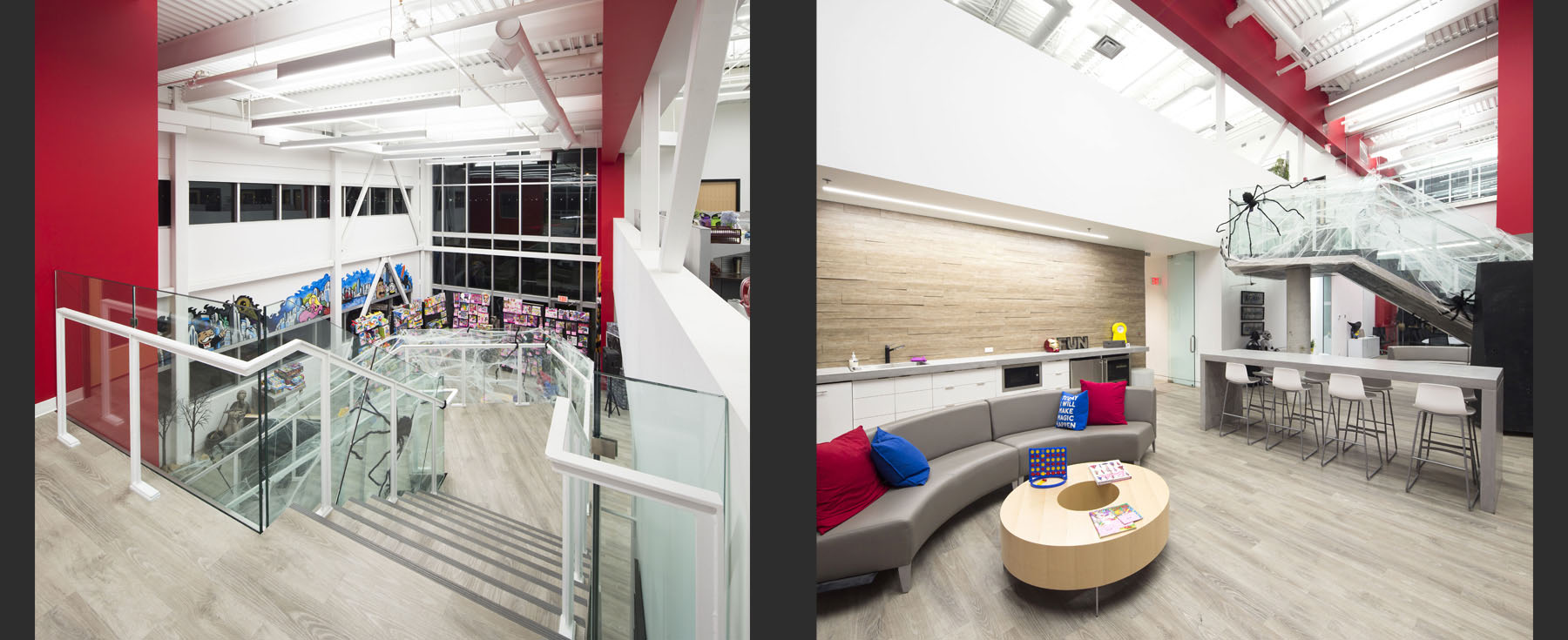 CMS Famous Toys engaged Kasian to create an active work environment that inspires, is comfortable, and considered as a benefit of employment. The resulting design serves as both the company’s head office and distribution centre. As the head office of a toy provider, the environment epitomizes fun, professionalism, passion, win-win, and embracing challenges – the physical manifestation of CMS Famous Toys’ guiding principles.