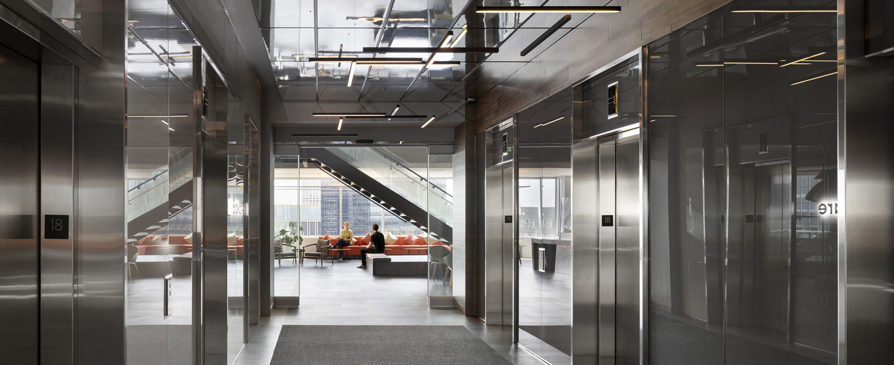 Themes and imagery from the gaming world, along with related signage and branding are incorporated throughout, bringing to life the interior of the office tower.