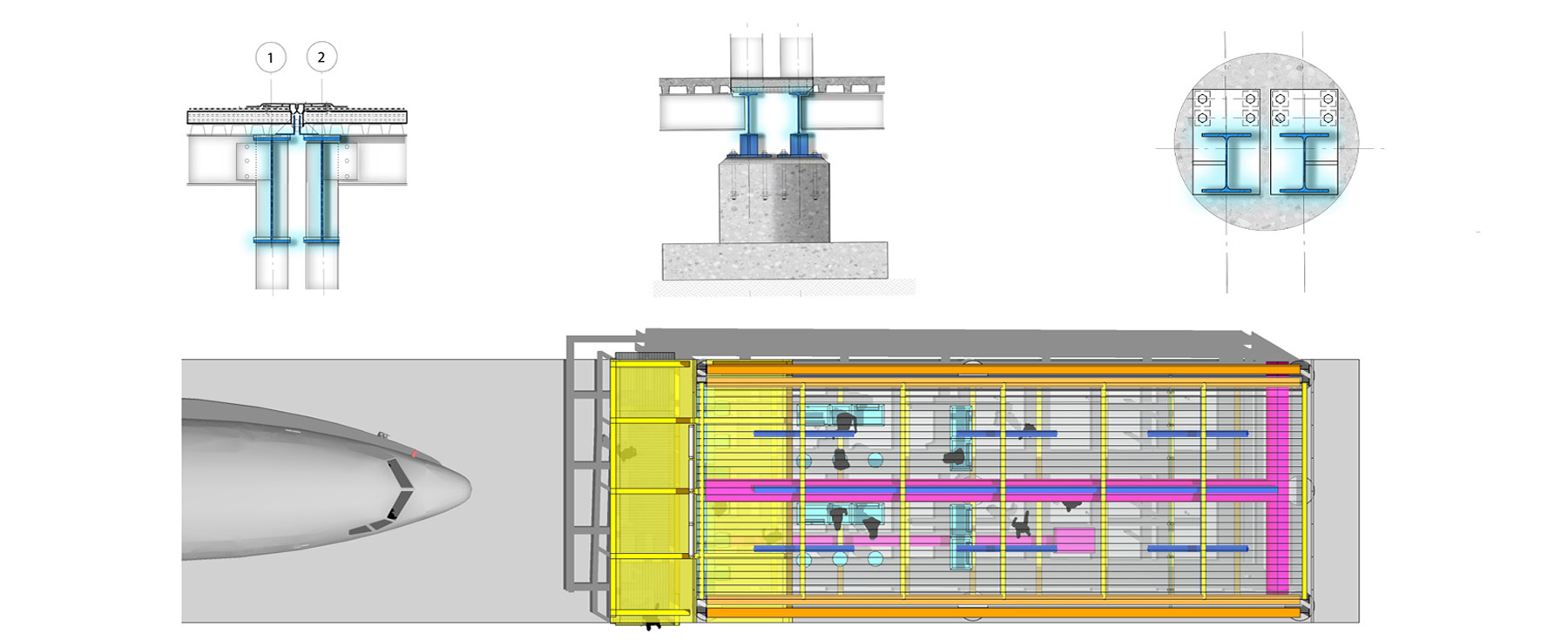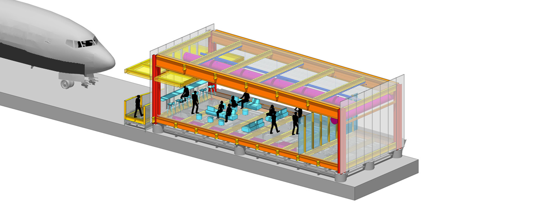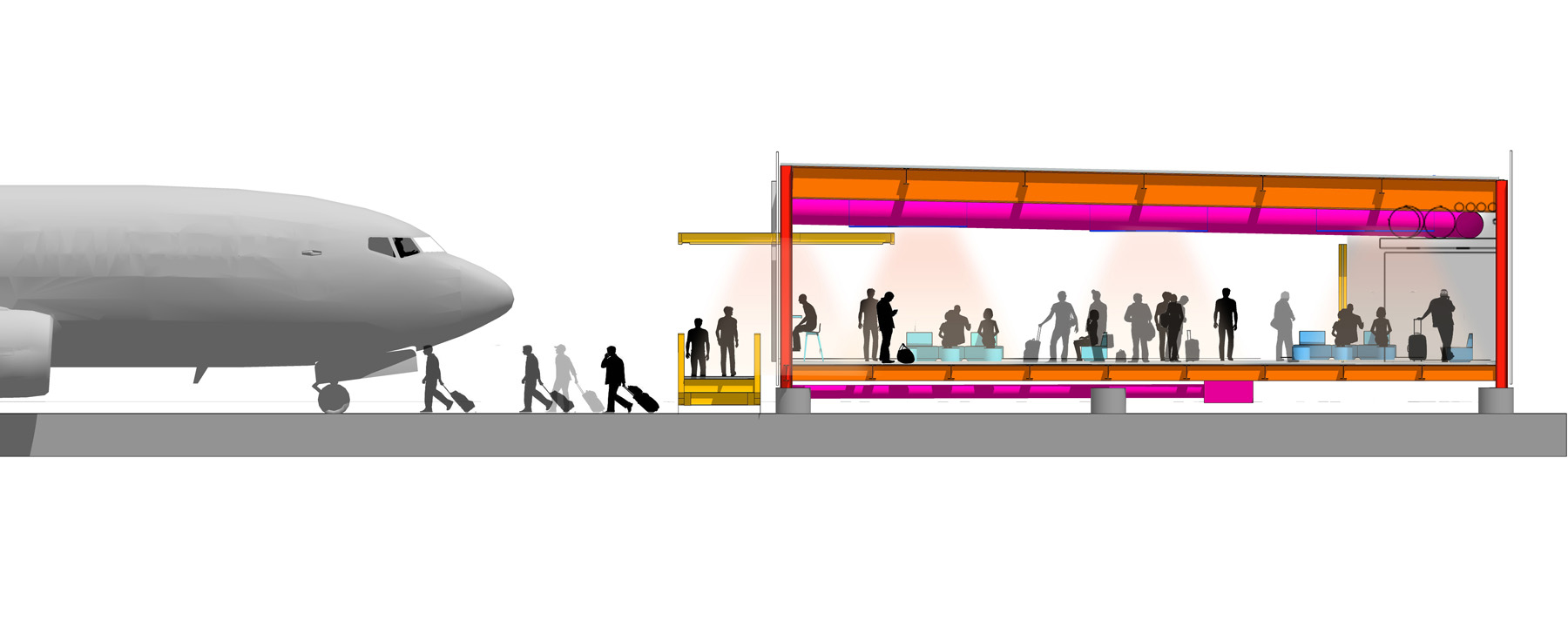 The project is comprised of two buildings: the Passenger Hold Room Addition is an addition to the existing terminal, and the Domestic Bag Claim Building is designed as a standalone building. Both buildings are designed as modular structures that can be relocated after serving their intended purpose at the airport, which is estimated at 10 to 15 years. The building is designed to provide maximum flexibility to the owner in the future with column free spans and light gauge steel internal partitions.