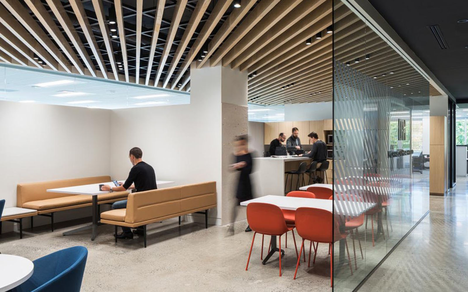 Seeking more than just a physical move, the market-leading firm embraced the opportunity to evolve their operations and accelerate their transition to a technology-enabled, design-driven workplace. This shift not only impacted the day-to-day experience of their 300 staff, but also the in-between spaces beside desks, offices, and meeting rooms, which had to be defined, planned, and optimized. From furniture planning to collaboration technology, every decision was made to support their people and the way they work.