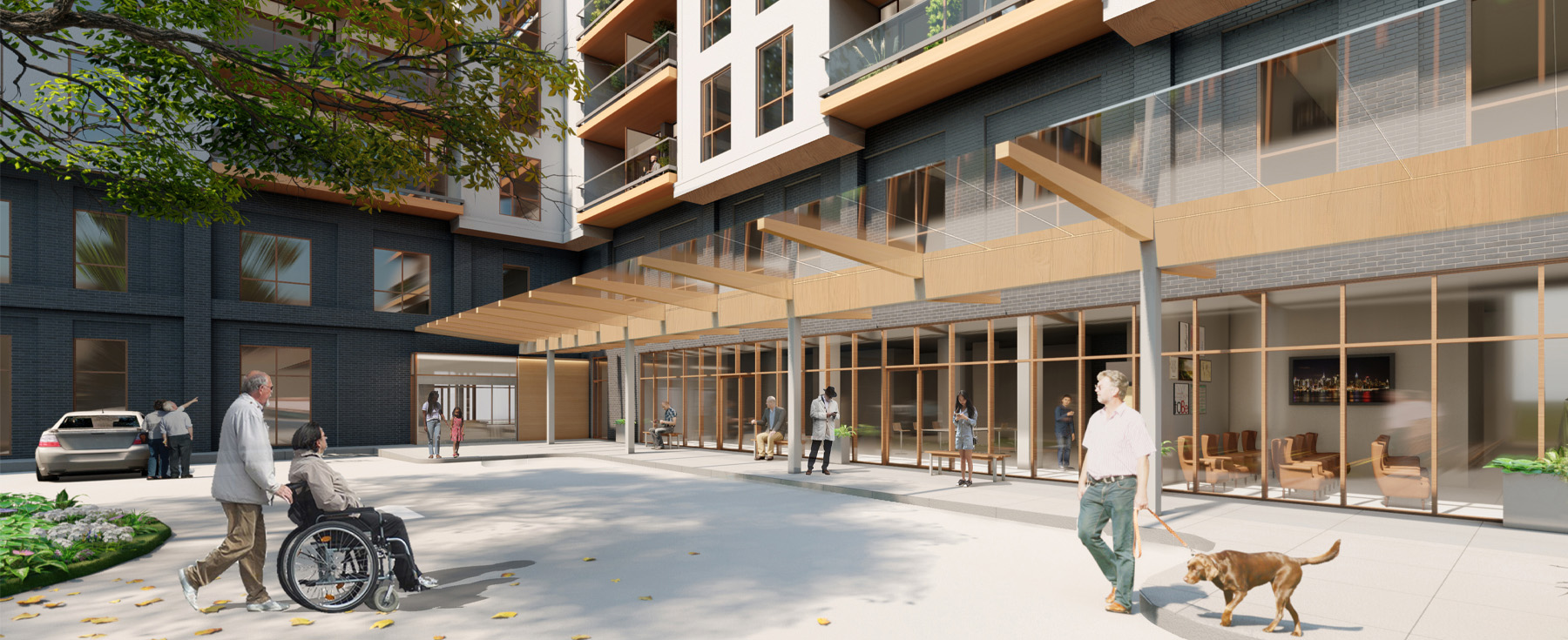 The 8-storey building features seven floors of independent supportive living and one floor of assisted living, with underground parking and active street-level amenities to promote community connection. A rooftop garden encourages outdoor engagement and enhances resident well-being.