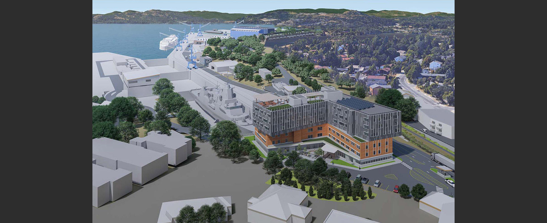 The site accommodates ship repair facilities for a number of tenants. The project sought to outline a renewal development master plan to increase operational capacity to meet future service demands. We defined a complex program of critical time-sensitive operations. We then carefully placed the project components within the challenging site with restricted plannable area, a significant elevation change, challenging soil conditions, protected habitats and sensitive archeological areas. The master plan considers the best use of land, placing right-sized facilities to achieve ideal adjacencies and workflows while preserving the culturally and environmentally sensitive site features. It provides the long-term framework for renewal and outlines sustainability targets to address climate resiliency, energy and carbon and holistic sustainability.