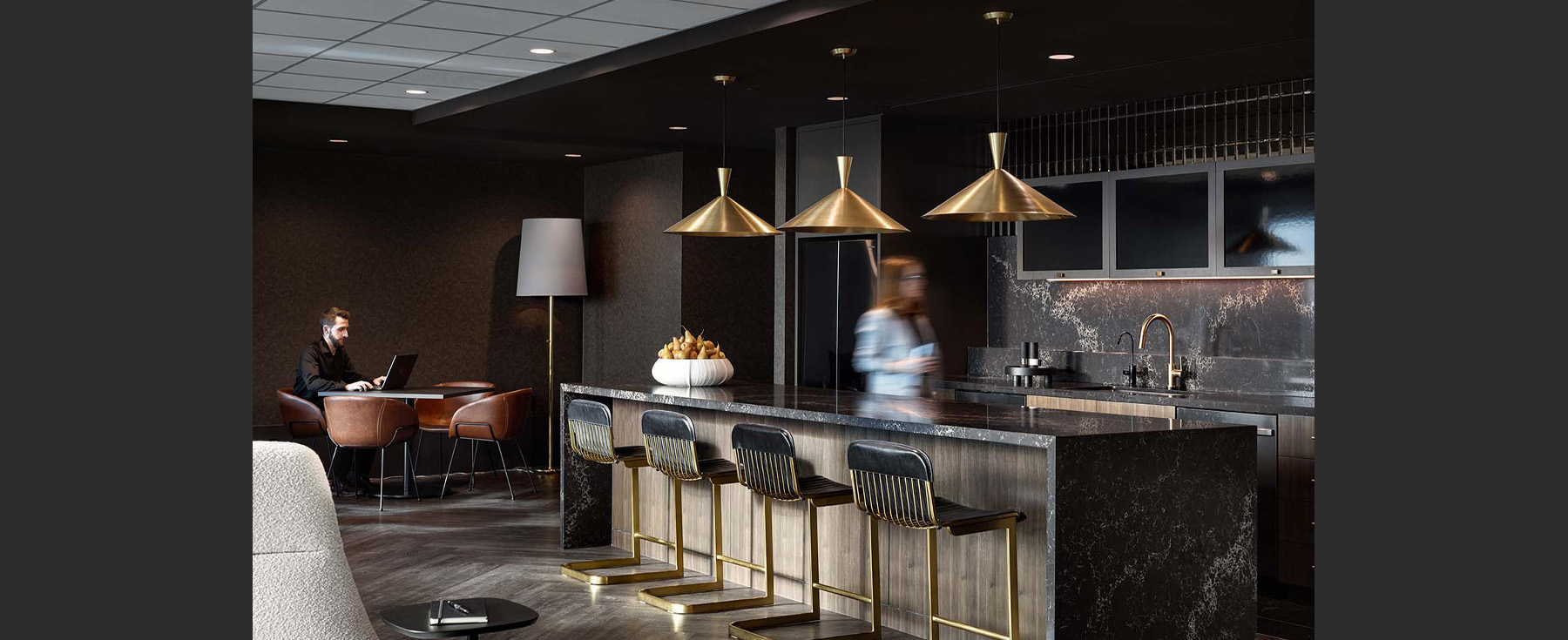 Stikeman Elliott’s Calgary office redesign introduces new ways of working and enhances the experience for employees and visitors. Blending aspects of hospitality and high-end residential design into a modern workplace, the 41,600-square-foot, two-level space reflects the law firm’s identity with a confident, yet approachable atmosphere designed to bring people back to the office.