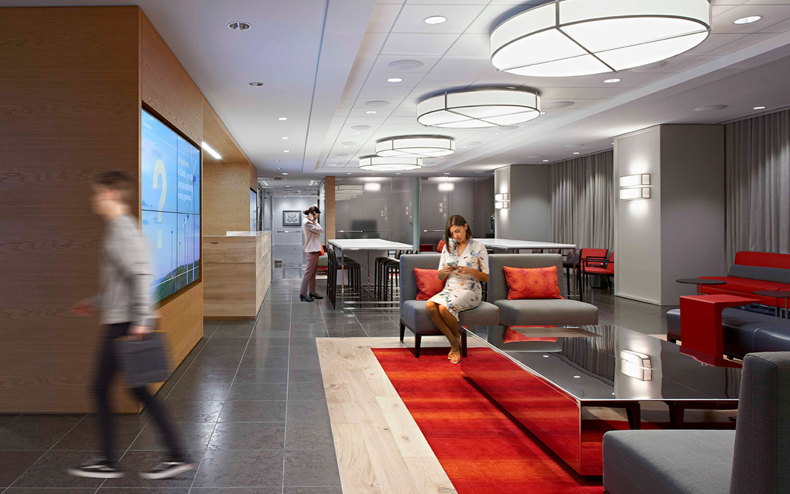 Internally branded as O.N.E. (Our New Environment), the vision reflected Enbridge’s desire for a more cohesive workplace culture. Delivered in phases while the building remained fully operational, master planning guidelines helped ensure consistency, efficiency, and adaptability across all floors. A contemporary yet timeless look and feel was created with Enbridge’s brand colours, with reds and yellows signalling community and collaboration spaces.