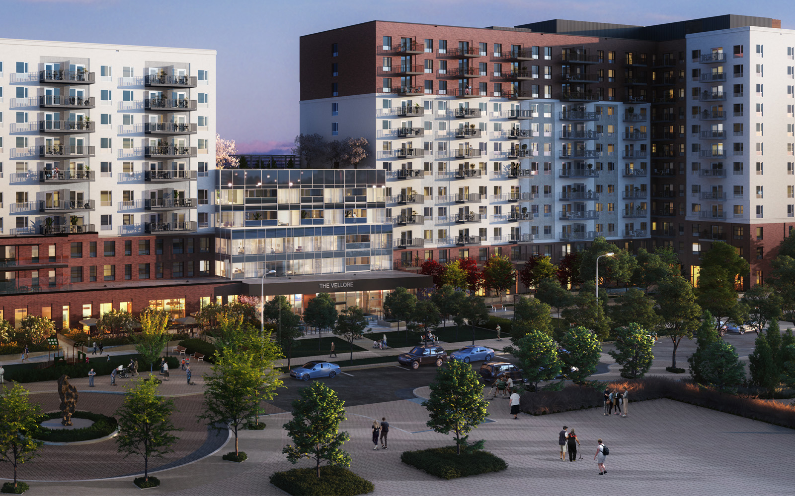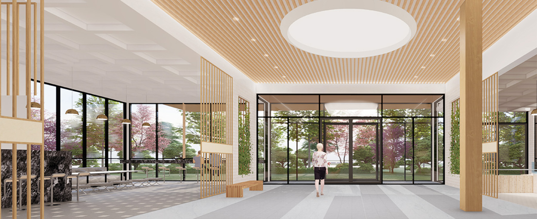 This senior living community challenges ageism through design. Amenities include multiple dining options, games, crafts, and a salon located at street level with view to the exterior and pedestrian realm. Residents can enjoy a range of experiences within the building designed for aging-in-place, with clear entry sequences and intuitive wayfinding.