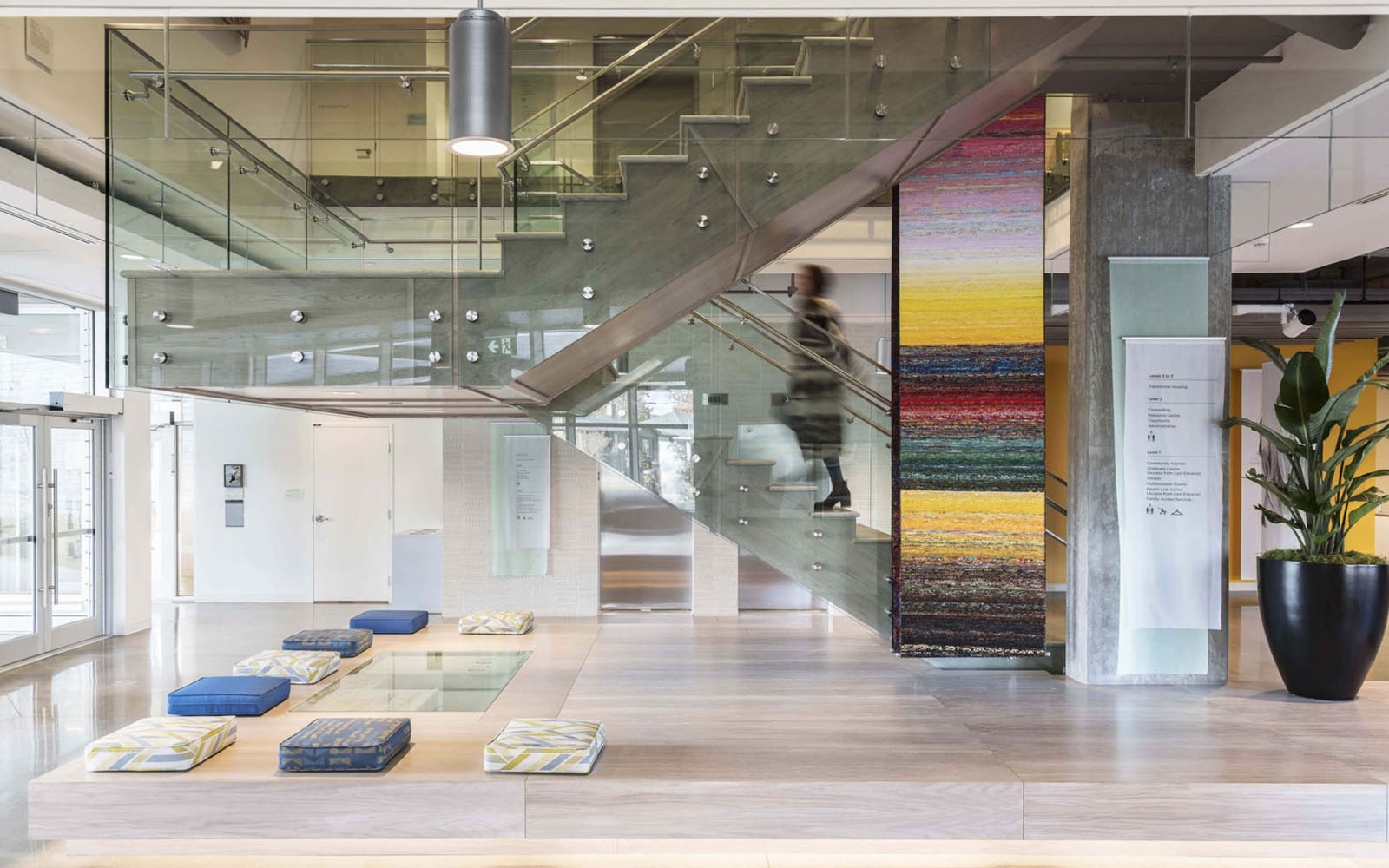 Upon entering the building, you walk amongst empowering canvas portraits that reflect women of all races, religions, ages and walks of life ― mothers, sisters, wives, friends, and daughters. In collaboration with local artists, a comprehensive art program is woven throughout the building and reflects all the women that the YW serve. Amongst a variety of multi-use spaces on the main floor, a large-community kitchen serves as a social centre with a deck that looks toward the front plaza and beyond. Soft seating and flexible furniture allow users to adjust gathering spaces for their needs. Other program includes childcare, administrative, counseling and training spaces, as well as housing for 100 women in need.